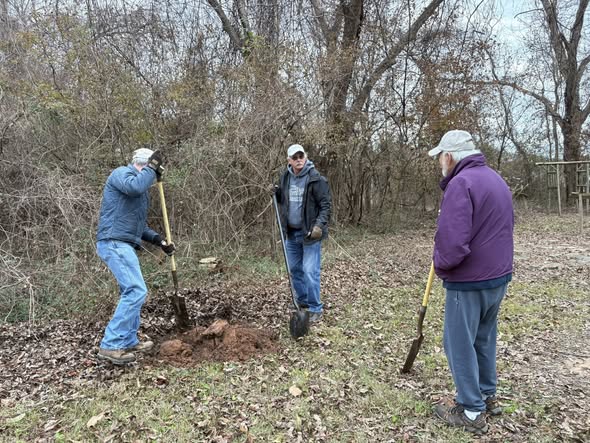 We had a great time planting trees at North Bossier Park. It was hard to move your feet without losing your shoes in the mud, but it was fun. We added 50 trees, a mix of Bald Cypress and Dwarf Magnolias, to enhance an already beautiful park managed by Mary Ward, Director of Bossier City Parks. Special thanks to the Bossier Parish Police Juror, Chris Marsiglia, District 6, for sponsoring this project, Ken Ward, Parish Administrator, and Trey Lindsey for digging the holes. As always, Gary Knippers of Knippers Landscape and Design did a fantastic job providing good-looking, quality trees.