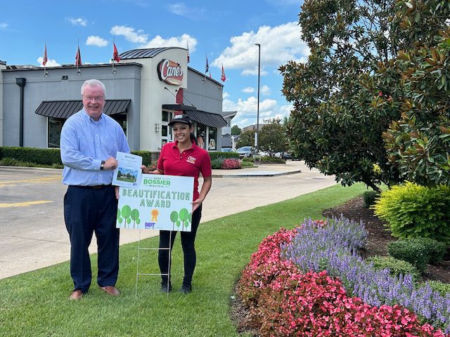 Cane’s on Airline Drive was named our Beautification Award winner, with their neighbor, Barksdale Federal Credit Union, selected as the runner-up. Both businesses enhance the daily experience of local commuters along Airline Drive by maintaining beautiful, well-kept exteriors.