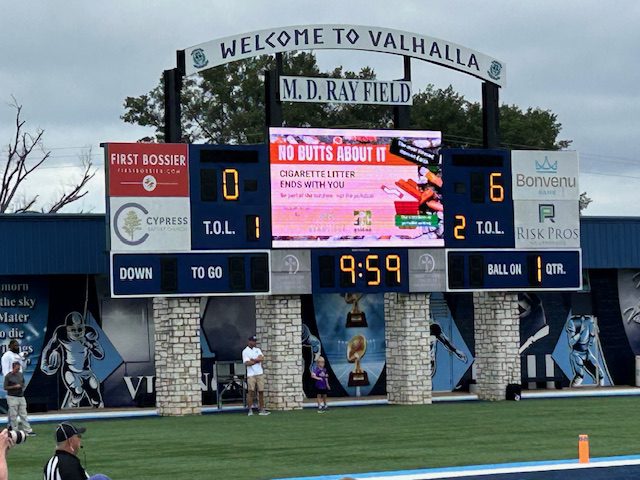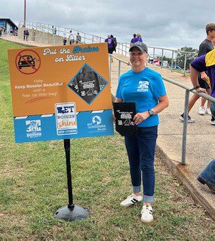 Keep Bossier Beautiful shows how small actions can make a big impact as they kick off a season of litter-prevention education at the Bossier Football Jamboree. Volunteers were in the stands alongside 5,200 fans, cheering on their favorite teams, handing out ash cups and trash bags for vehicles. Media messages appeared on game marquees, billboards, radio, and in local newspapers, raising awareness about the hazards of cigarette butt litter.