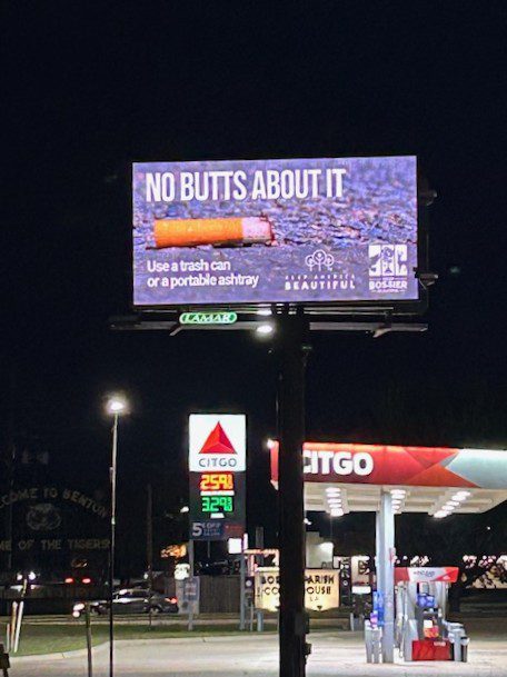 KBB volunteers gave away 500 pocket ashtrays and collected over 9,000 cigarette butts from five of Bossier City’s most traveled intersections while providing 1.8 million media impressions during this cigarette butts awareness campaign. Urging citizens to help fight the number one littered item in the world. This project was sponsored by a grant from Keep Louisiana Beautiful.